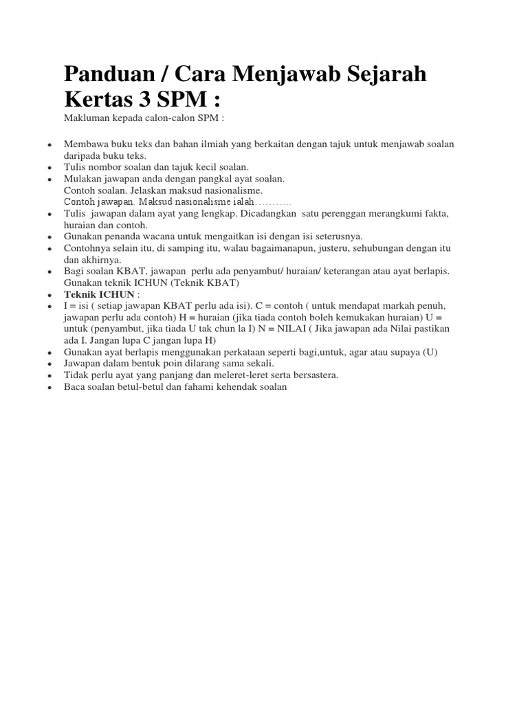 Contoh Soalan Dan Cara Menjawab Sejarah Kertas 3 Top Otosection